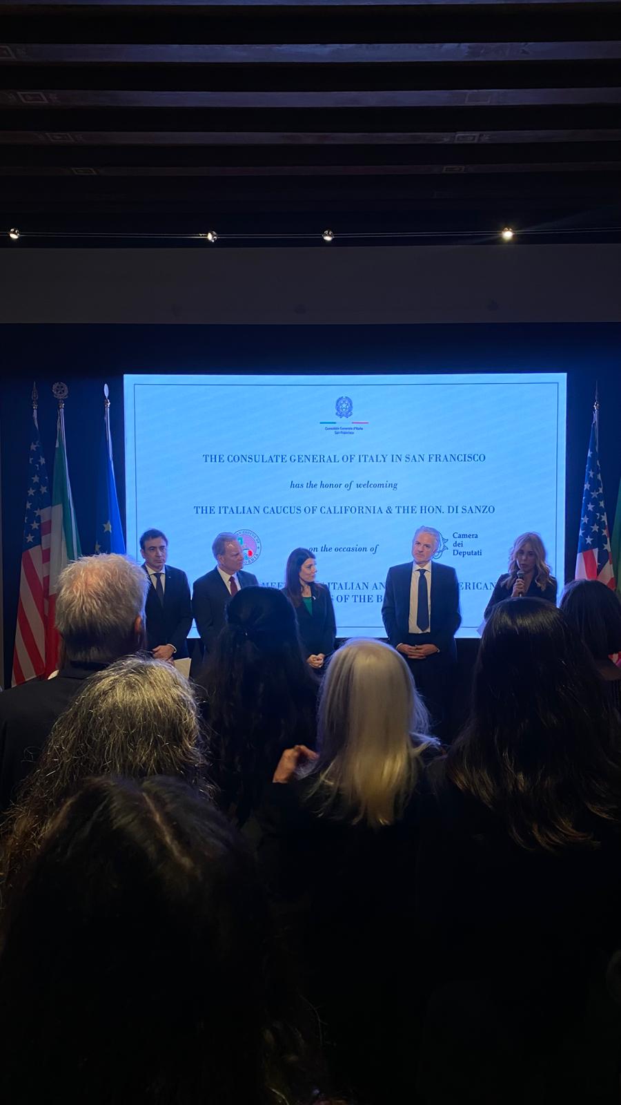 The event was preceded by an institutional meeting in which the two co-chairs of the Italian Caucus of California, Catherine Stefani (Member of the California State Assembly) and California State Senator Dave Cortese, both of Italian origin, presented their project to Consul General Massimo Carnelos, Consul General in Los Angeles Raffaella Valentini, and Hon. Christian Di Sanzo (Member of the Italian Parliament elected in the Overseas Constituency, North and Central America division).