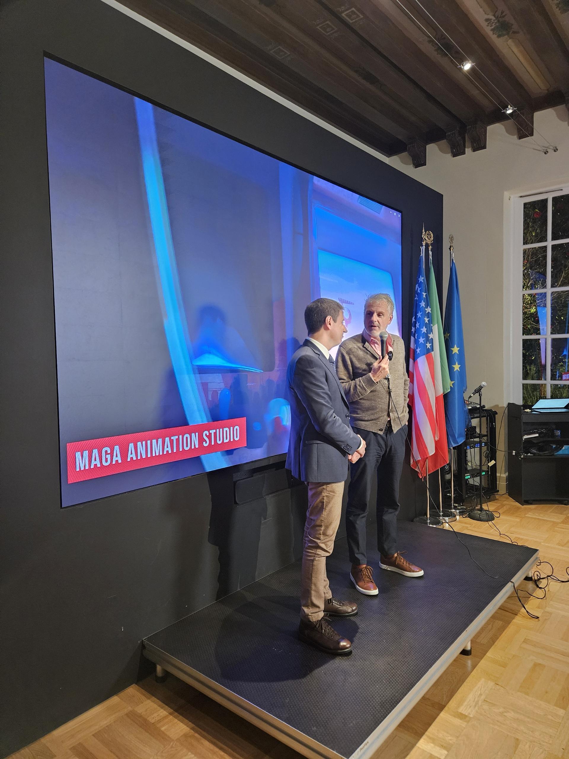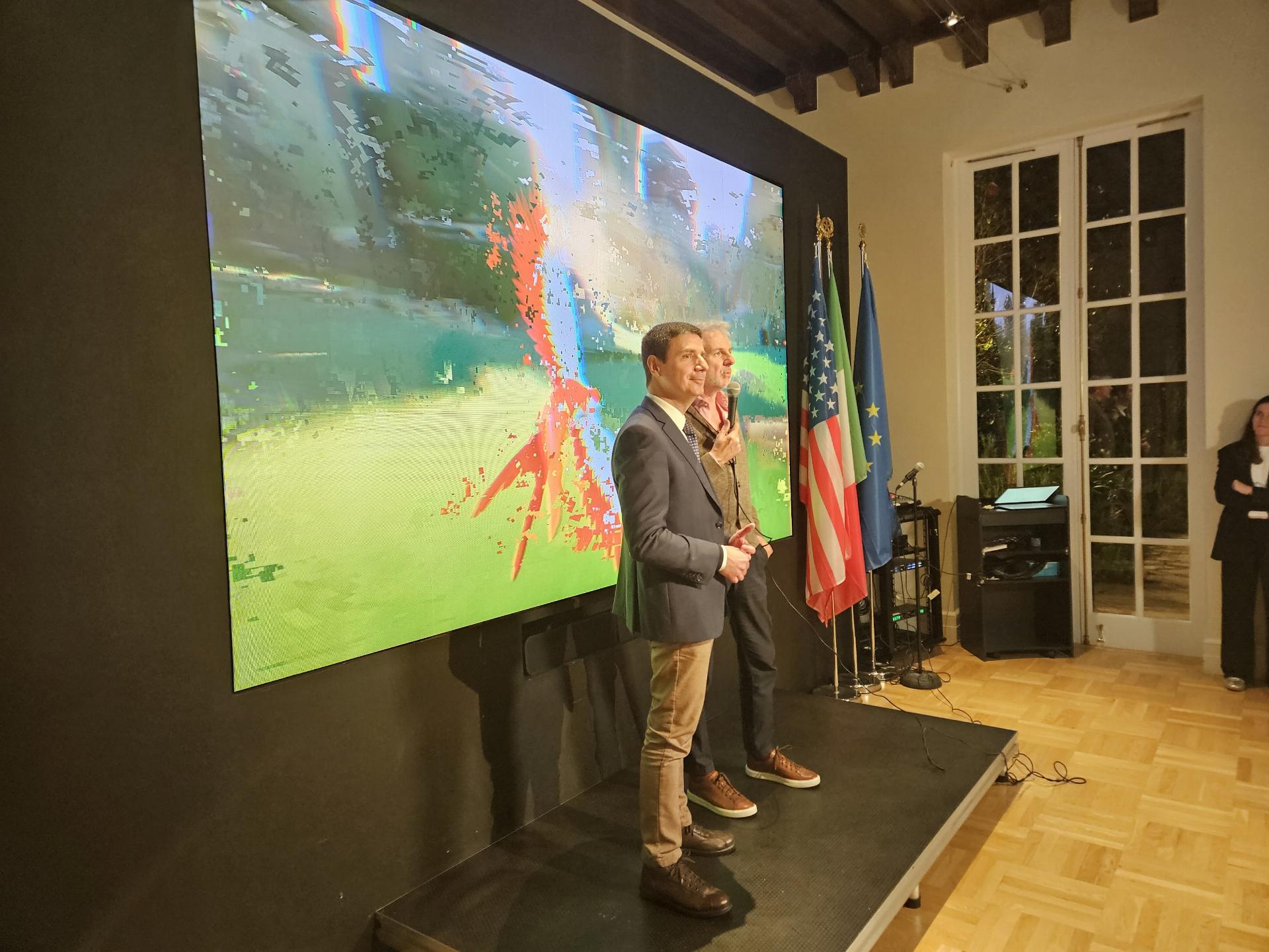 The evening reception opened with institutional remarks from Consul General Carnelos, who – alongside with the Director of the ITA Los Angeles Office Giosafat Riganò – welcomed guests and acknowledged the Italian companies contributing to this year’s conference. In his address, he emphasized the importance of cultural and technological exchange in sectors such as gaming and interactive media, where creativity, innovation, and storytelling converge.